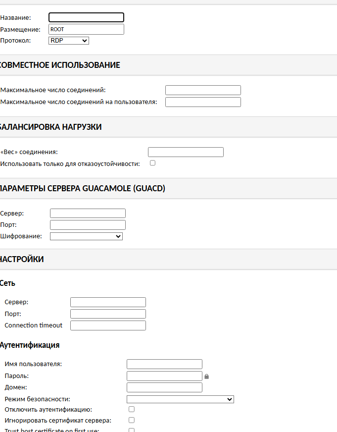 Если Guacd один и дефолтный, то его не заполнять, если он запущен отдельно в локалке с подключаемым компом, то надо прописывать и его