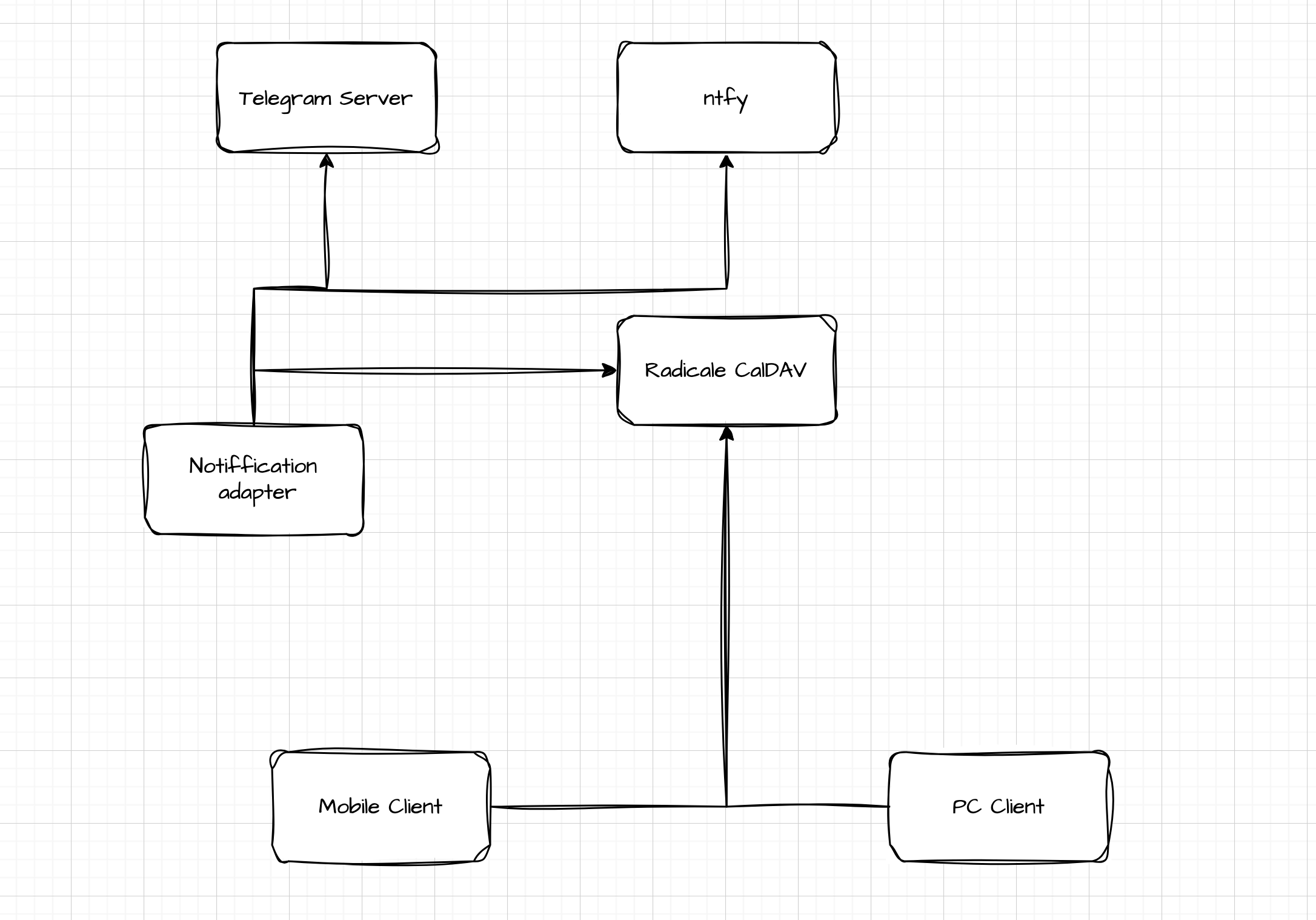 Radicale - CalDAV сервер для синхронизации. Клиенты для создания напоминайний Tasks.org (Android), Thunderbird (PC). Микросервис (собственная разработка) делает следующее: слушает Radicale и отправляет уведомления куда необходимо (telegram, ntfy).