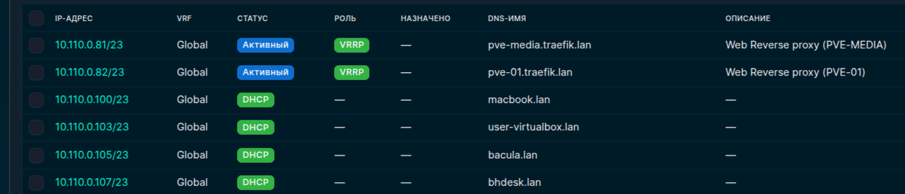 - Для DNS сервера/ов можно создать VRRP адрес, для Reverse-proxy тоже, например