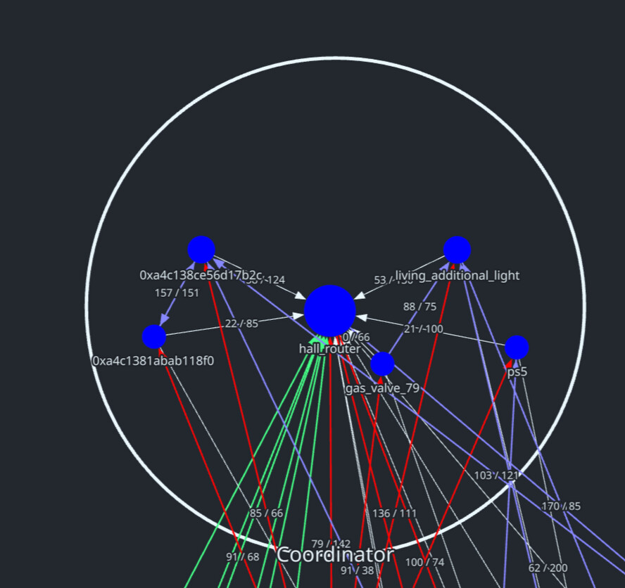 И да и нет, я хочу попробовать вынести координатор ближе к центру, но надо понимать, что координатор может держать порядка 8-15 конечных устройств. На малых сетях это может иметь смысл, на 20-30 координатор уже теряет свою актуальность и большая часть устройств будет висеть на роутерах