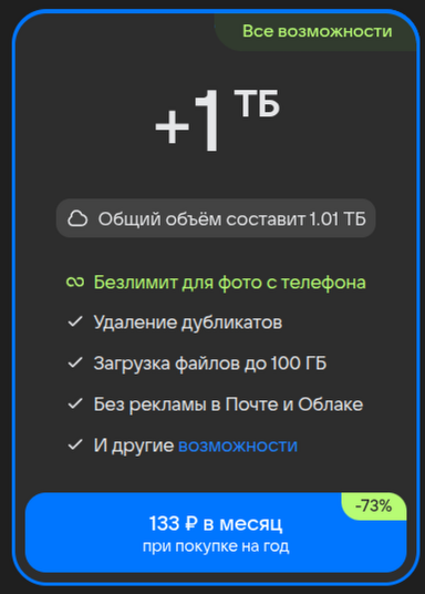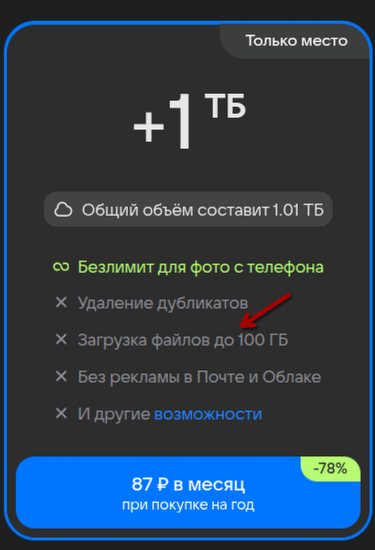 платный тариф на 1 Тб.