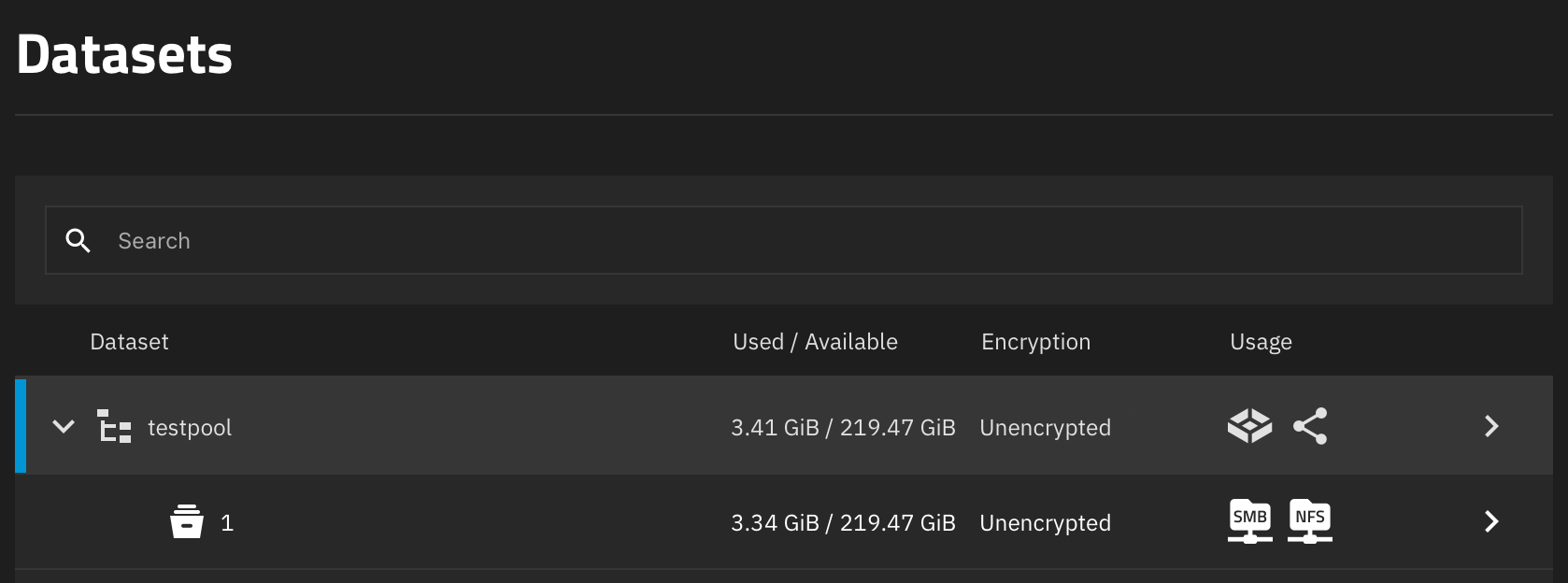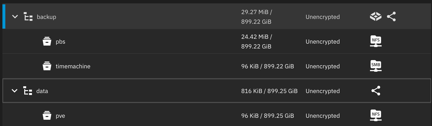 У меня есть LXC с TrueNAS cо следующими Datasets