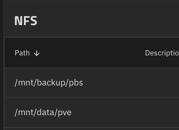truenas.srv.lan:/mnt/backups/pbs /mnt/pbs nfs auto,vers=4.1,tcp,rw,bg,hard,noatime,nolock,rsize=1048576,wsize=1048576,async 0 0