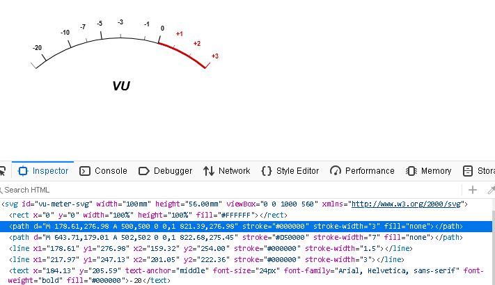 как видим - есть 2 path с кучей каких-то странных параметров, но зато есть line, правда как выясняется потом - это риски на шкале и еще есть text для цифр
