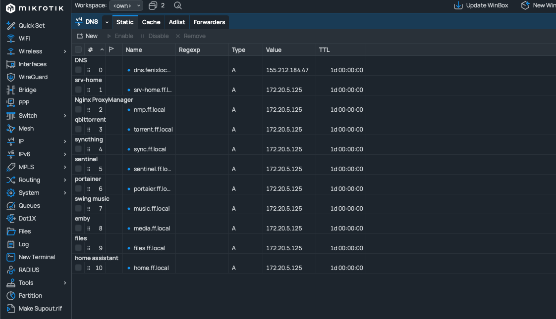 А когда сеть “не домашняя”, то тут используются глобальные DNS записи и тот же домен http://portainer.lan.ru будет направлять Вас по другому маршруту.