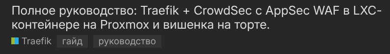 Админ, пишу с предложением сделать отдельную тему с названием “Руководство по настройке”. Или что-то типо того. Форумчане периодически делают очень крутые гайды. К примеру, менее часа назад один формкчанин выложил очень крутой гайд по Traefik. Также, периодически, Роман делает очень крутые гайды. Не хотелось бы потерять такую информацию. А в поиске не всегда находится все, что нужно