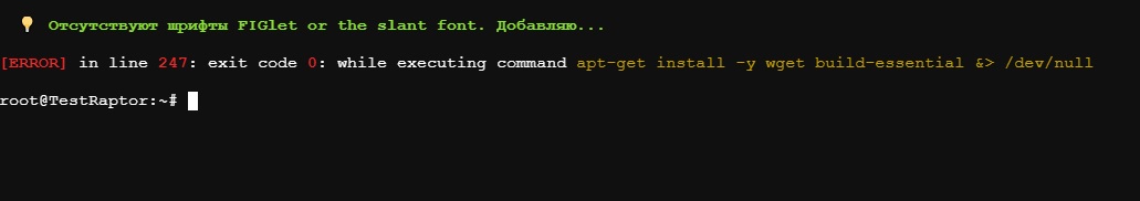 [ERROR] in line 46: exit code 0: while executing command $STD ./install.sh