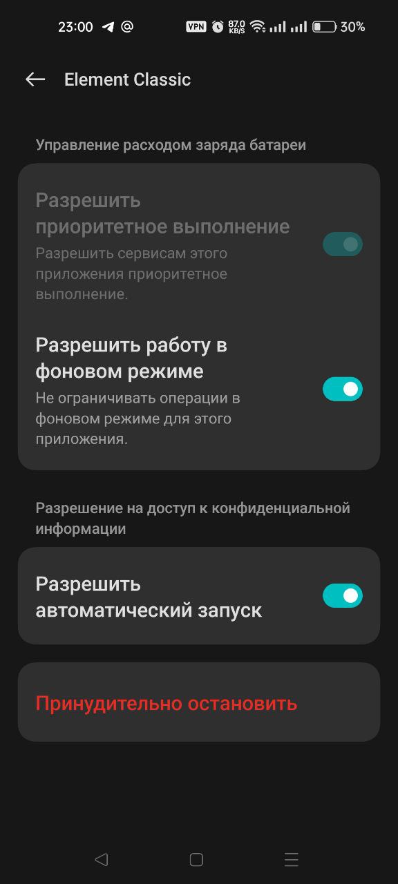 Тут не могу подсказать. Обычно причина в самой оболочке. У меня нет Realme, чтобы посмотреть и проверить. Но я на OP тоже долго бадался с уведомлениями. Искал форумы именно по OP и Element