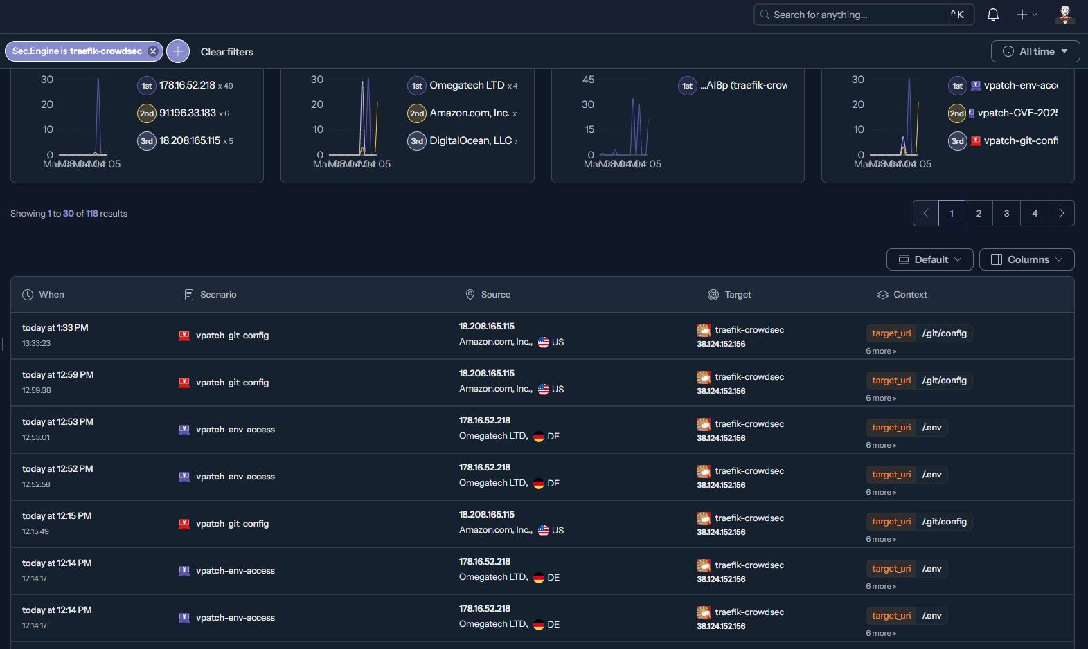 Защита на уровне IP – CrowdSec анализирует логи и блокирует подозрительные IP как на основе локальных правил, так и на основе глобальных списков (CAPI).
