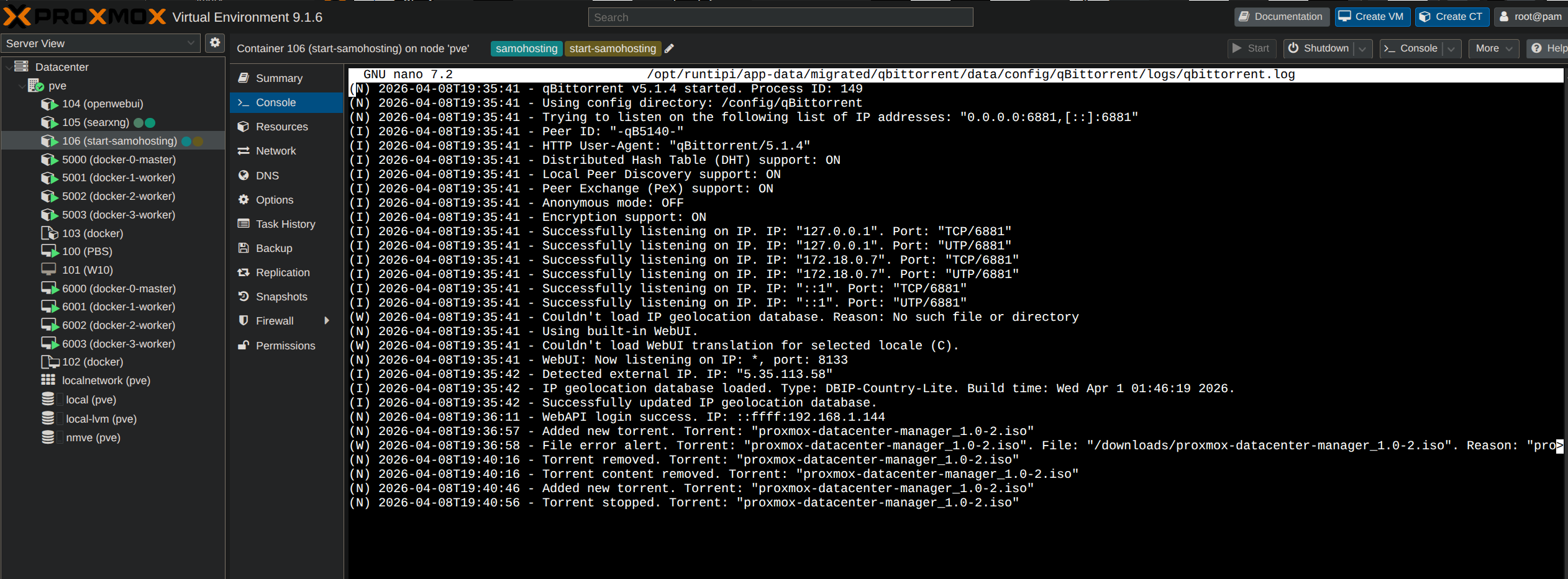 nano /opt/runtipi/app-data/migrated/qbittorrent/data/config/qBittorrent/logs/qbittorrent.log