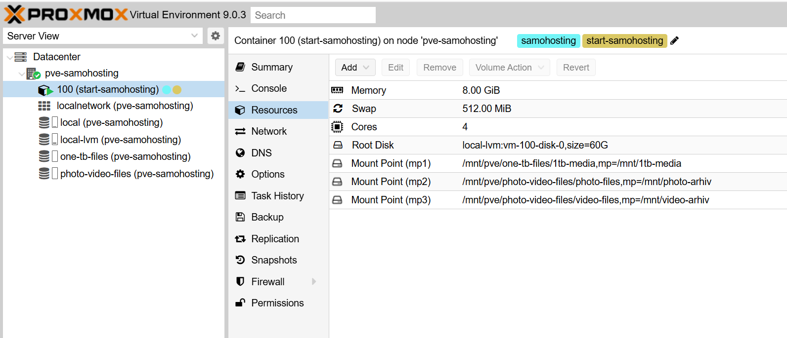слева = где у вас данные на хост системе(/mnt/pve/one-tb-files/1tb-media)