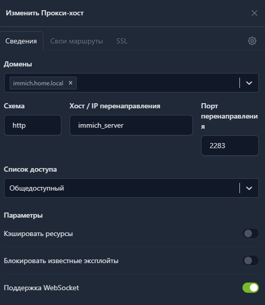 Location по гайду от immich, пробросил: