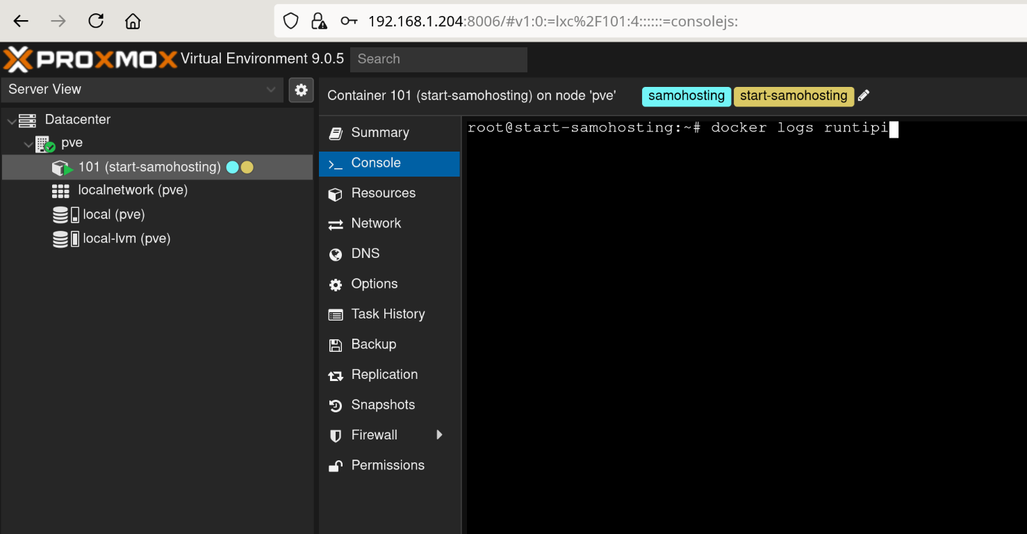 - Заходить в контейнер PVE и учиться дебажить runtipi