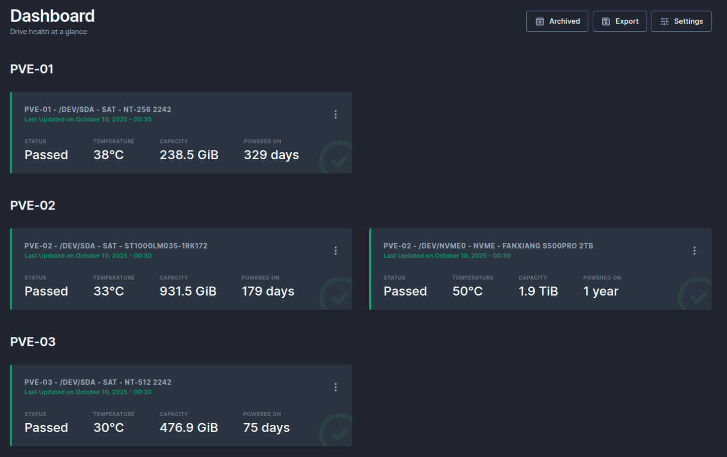 - Имеется несколько серверов с дисками, просматривать значения мониторинга в одном месте не очень удобно