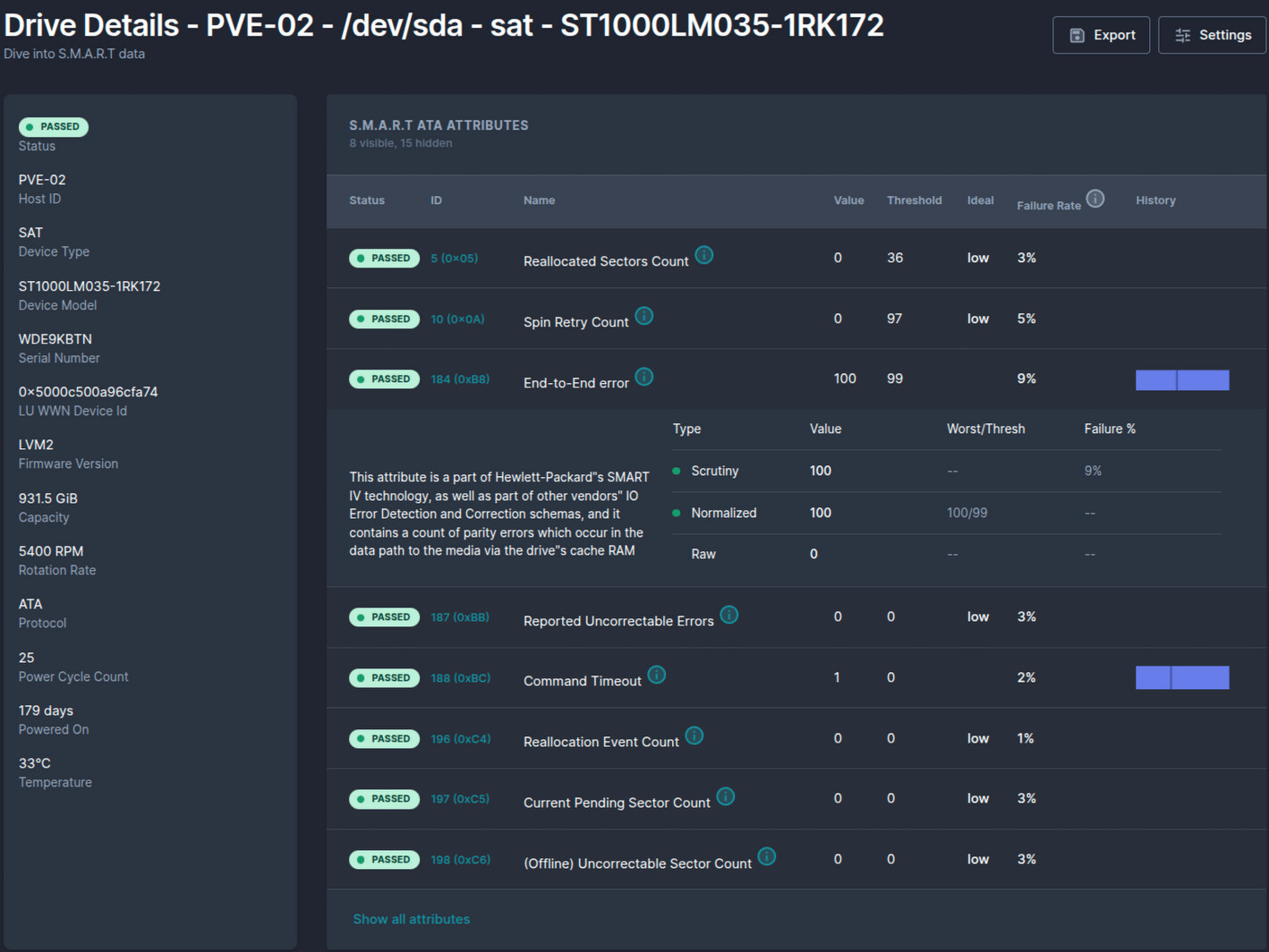 - Можно переопределять тип диска, что полезно очень т.к. proxmox показывает, что нет smart у диска, а по факту он есть