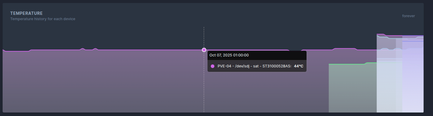 - вTrueNAS пока что у меня пробрасываются диски, а не контроллеры, мониторинг в нем не работает