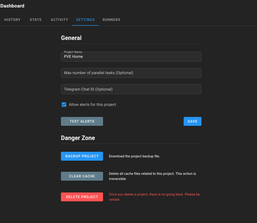 Тут можно настроить количество параллельных выполнений и ID TG чата для уведомлений