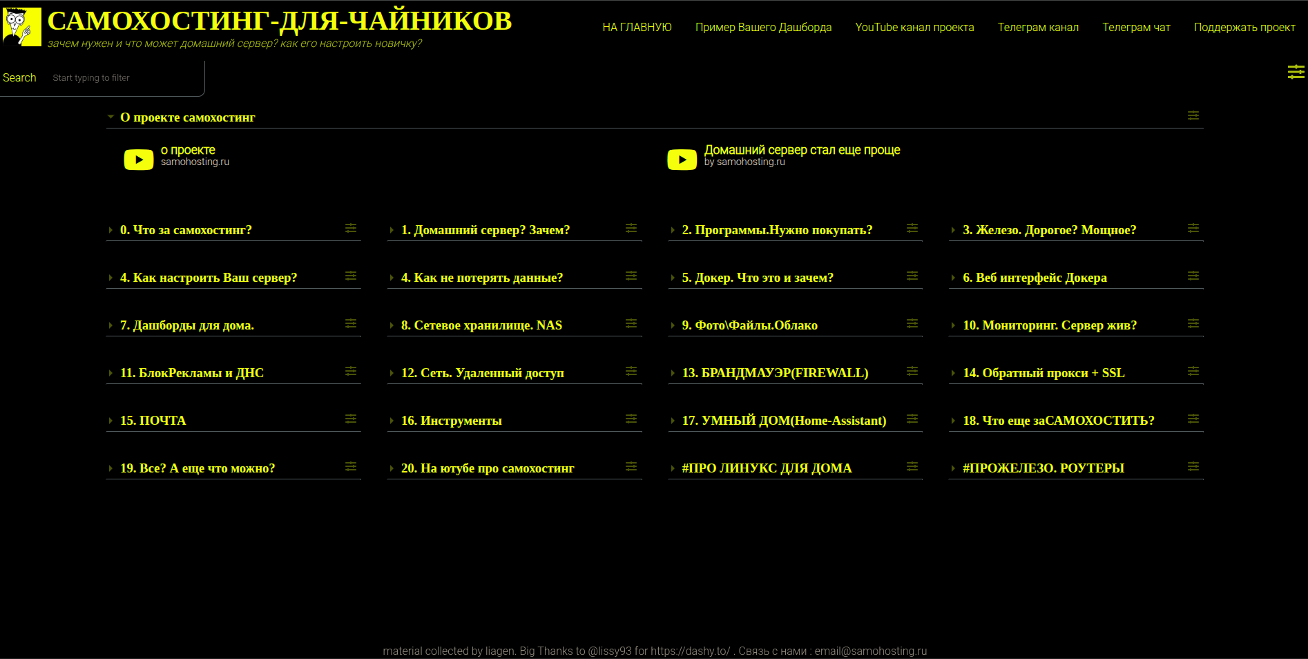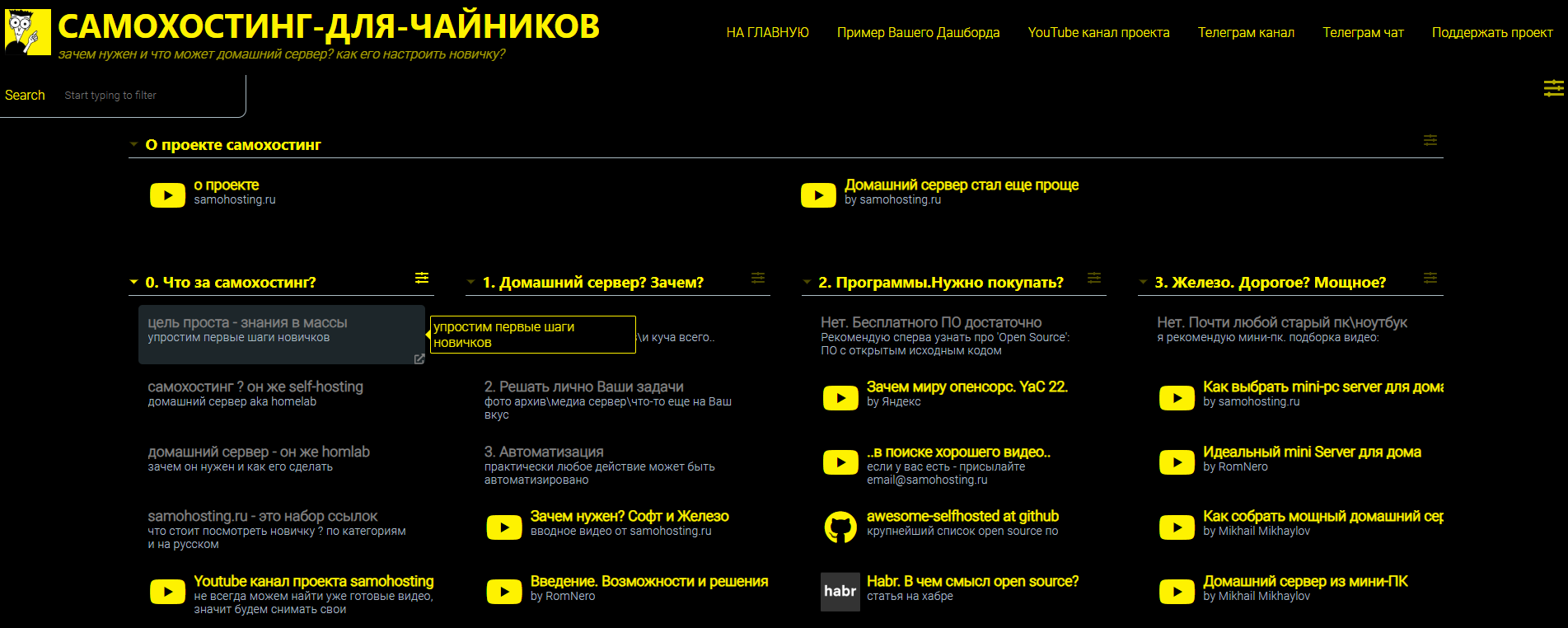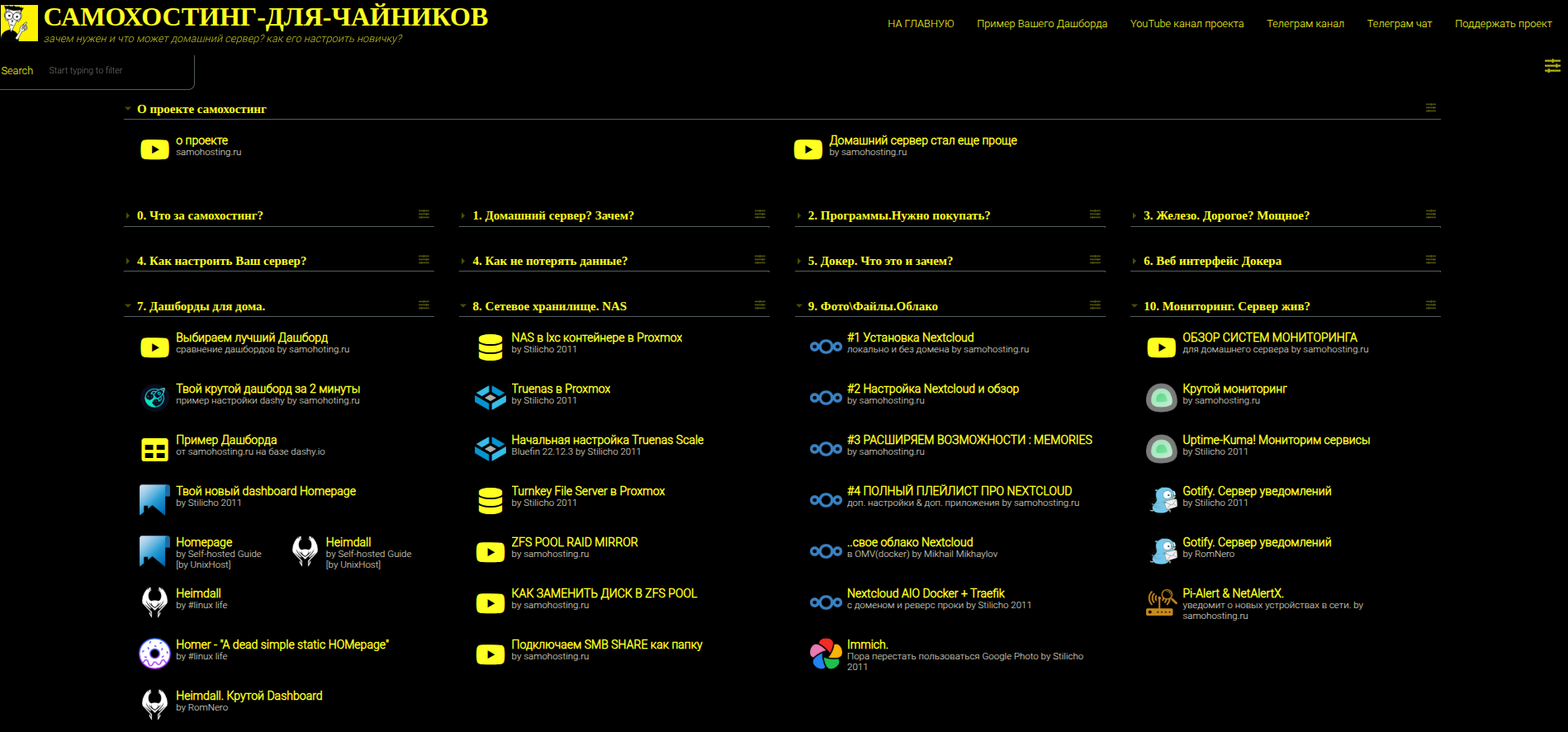Мне, как автору проекта, показалось очень забавным, что сайт - это и есть дашборд домашнего сервера dashy.