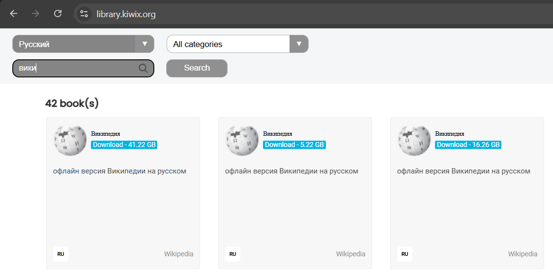 которые упакованы в архивы ZIM формата и могут быть Вами скачаны и lдалее открыты в клиентах. Полностью локально и автономно, без единого байта интернета.