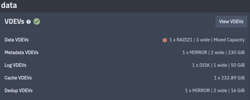 Минимально у нас должны быть Data VDEVs, это обычные диски с данными, на основе которых строится массив.