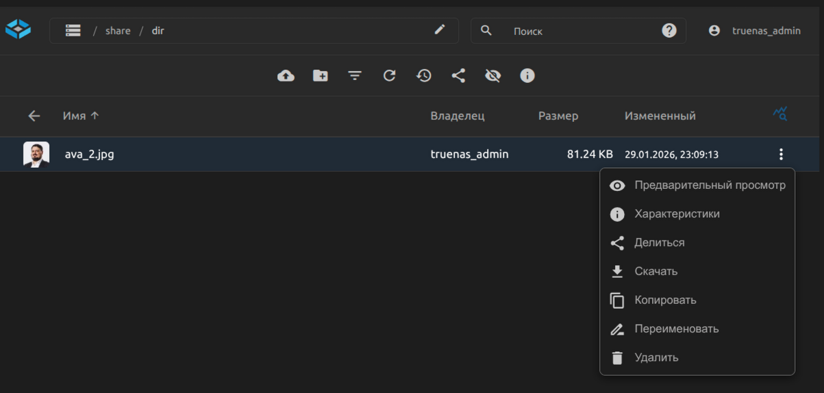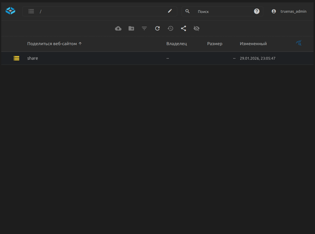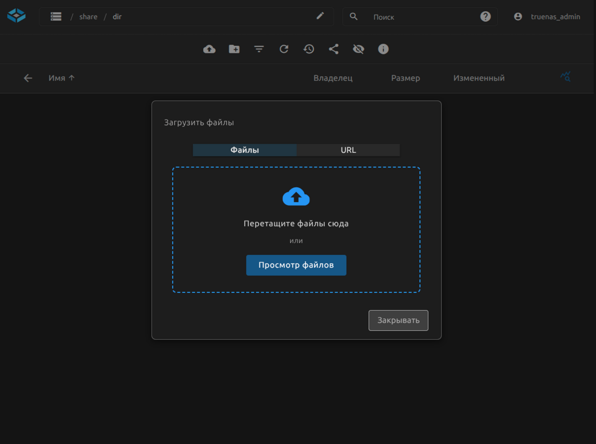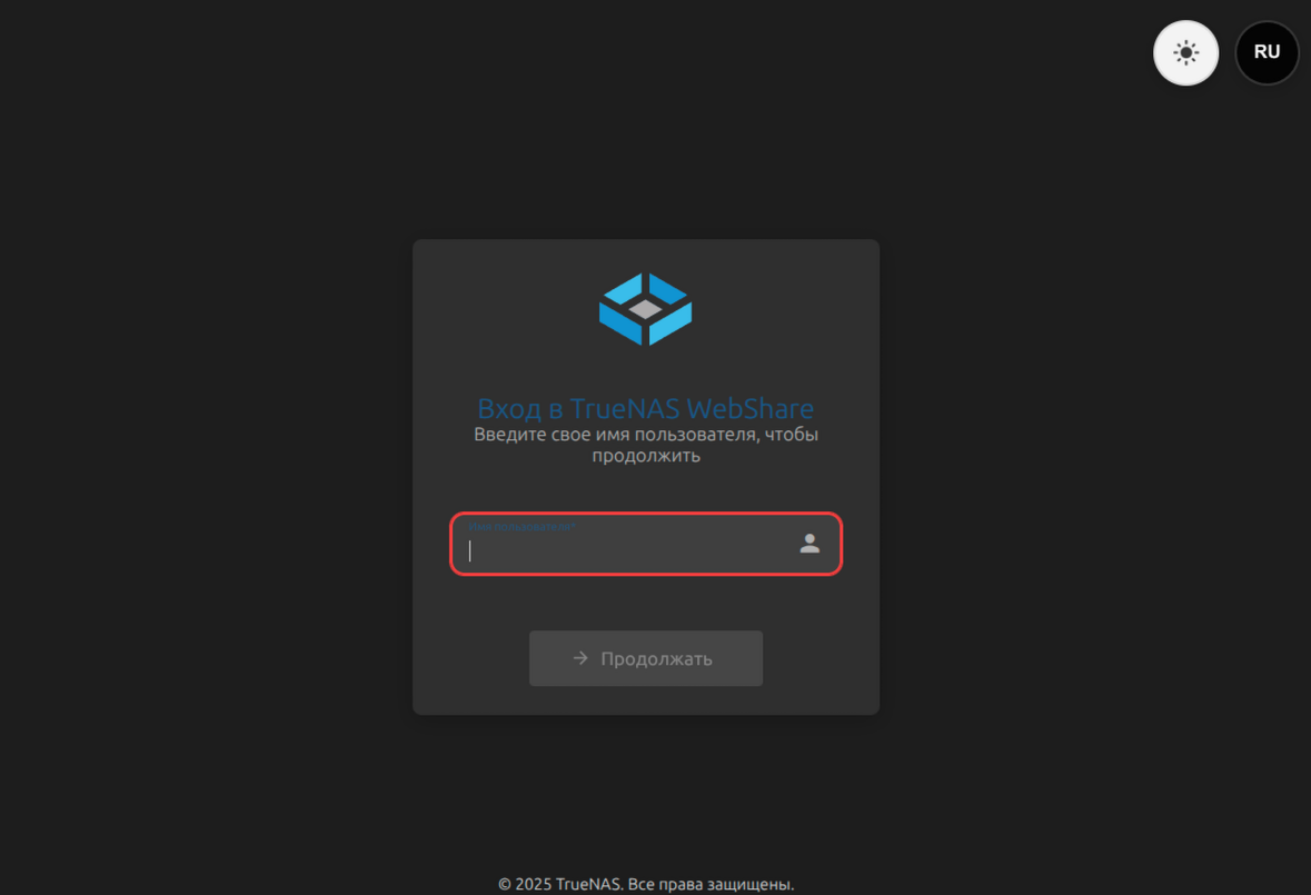 - Переходим по https://truenas_ip:755 (у меня активирован TrueConnect был и выдан сертификат, не знаю как там работает без него). Вводим имя пользоватея