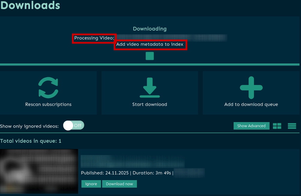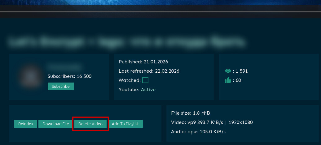 - Добавлен сервис bgutil-provider, который автоматически генеррирует PO Token Provider URL для обхода защиты “подтвердите, что вы не робот”. Youtube может определить загрузчик yt‑dlp как бота и заблокировать загрузку, для решения этой проблемы необходимо интегрировать в Tube Archivist данный сервис (ниже опишу, как настроить)