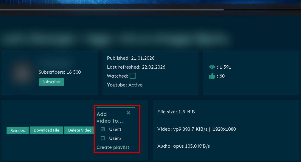 В ходе поиска подходящего для этих целей сервиса остановился на opensource проекте TubeArchivist. Понравилось в этом проекте следующие:
