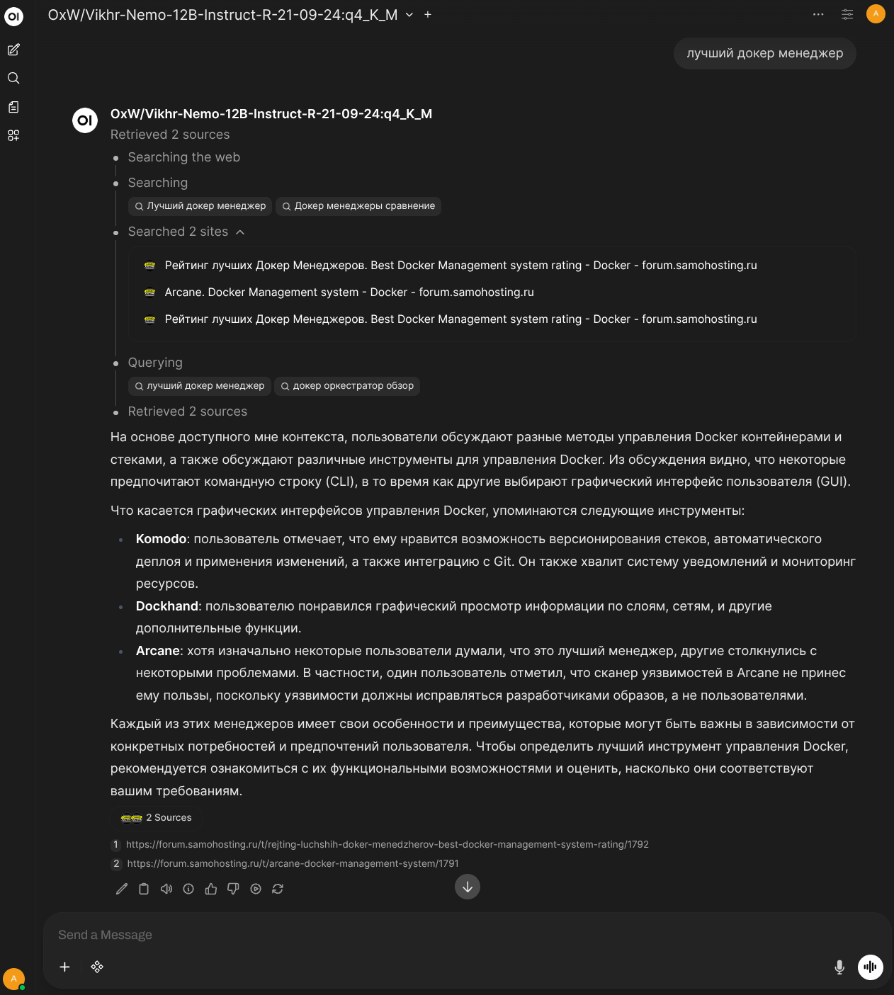 - как связать нашу локальную Ollam’у живущую в openwebui с поисковым движком SearXNG