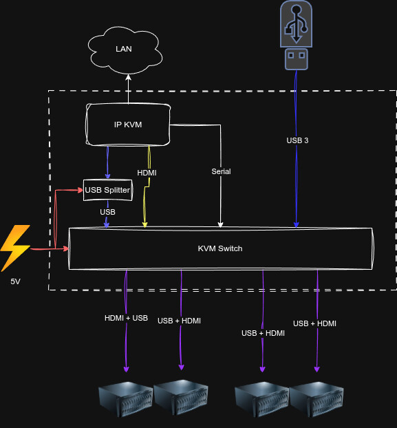 Еще у PiKVM есть хабы и устройсвта с хабами, вроде даже есть про китайские KVM хабы, с которыми можно работать из этой KVMки, сценарий: один KVM over Ethernet подключается к KVM разветвителю и он уже к 4м серверам. В веб интерфейсе можно выбрать к какому конкретно устройству надо подключиться