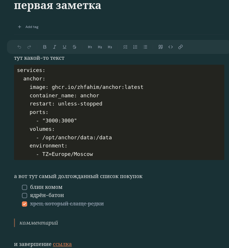 По рекомендации посмотрел self-hosted заметочник anchor